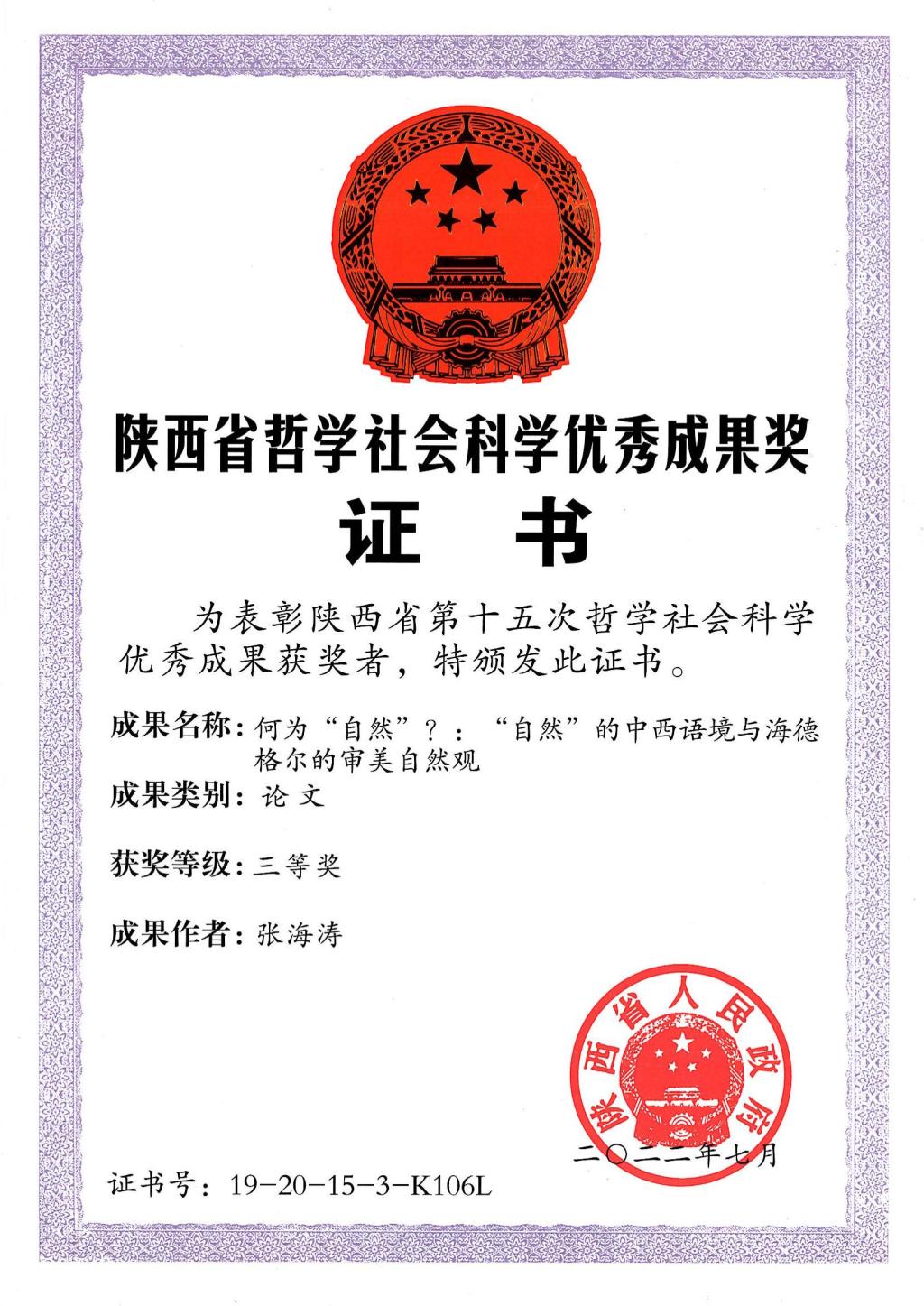 2022年陕西省第十五次哲学社会科学优秀成果三等奖(张海涛)