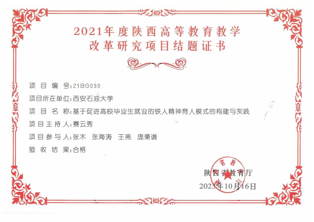 2021年度陕西高等教育教学改革研究重点攻关项目(赛云秀)
