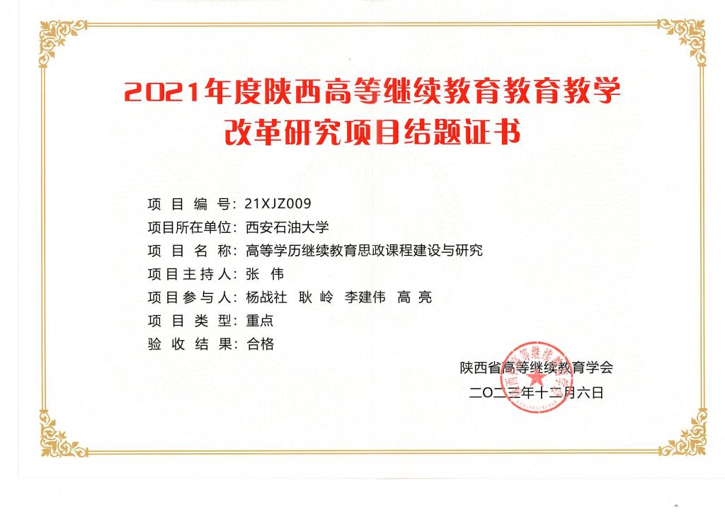 2021年度陕西高等继续教育教学改革研究重点项目(张伟)