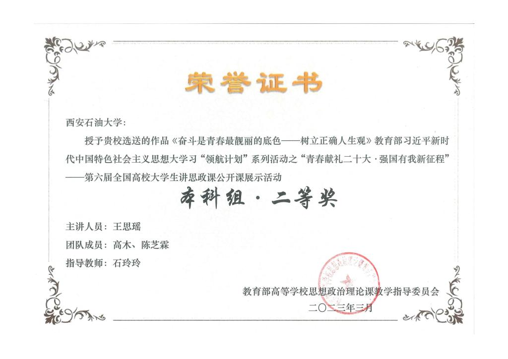 2022年第六届全国高校大学生讲思政课公开课展示活动本科组二等奖(王思瑶)