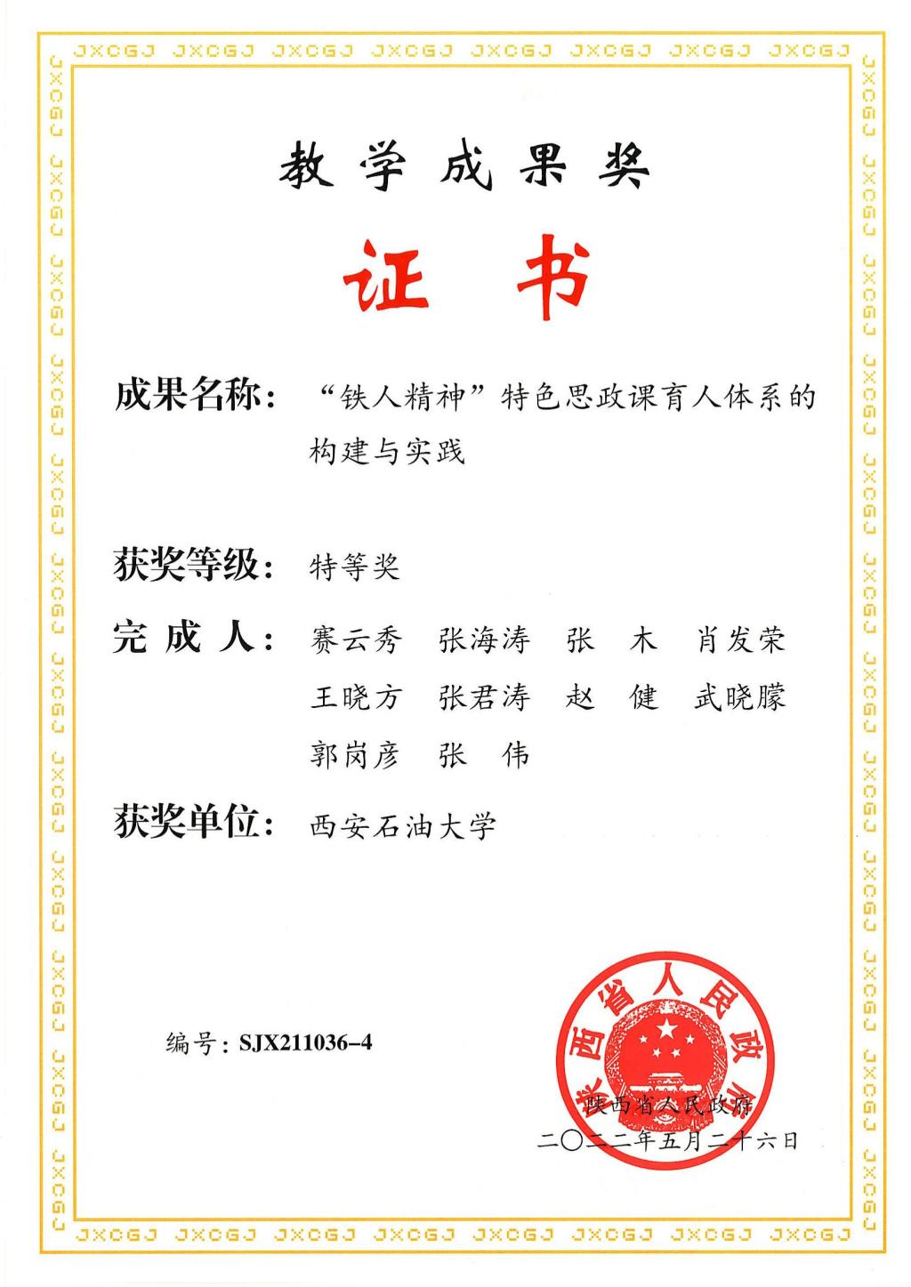 2022年陕西省教学成果奖特等奖(赛云秀)