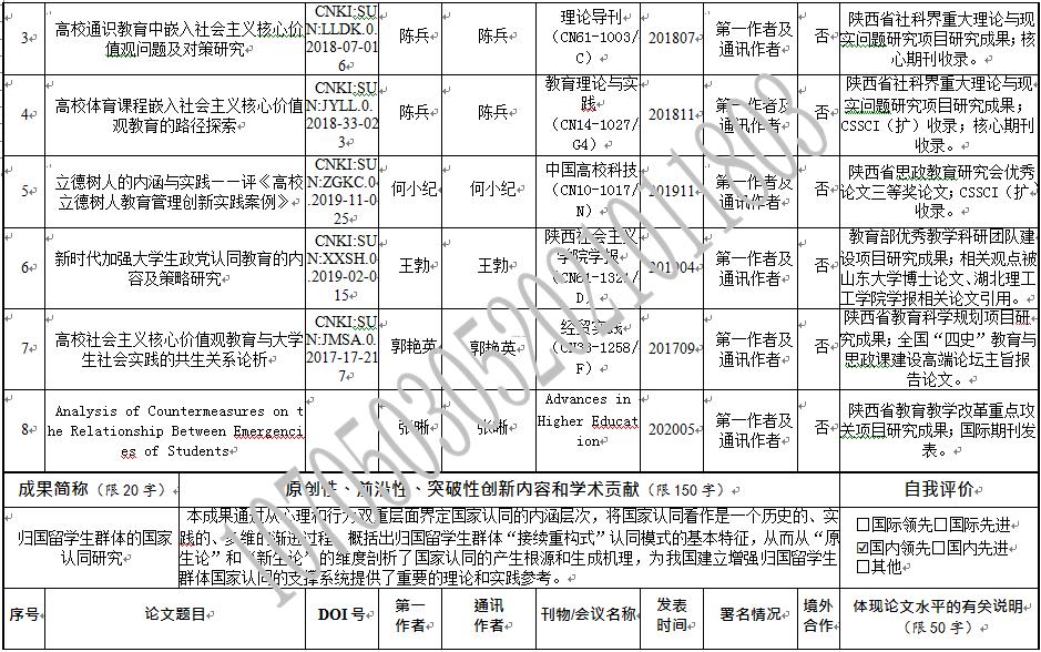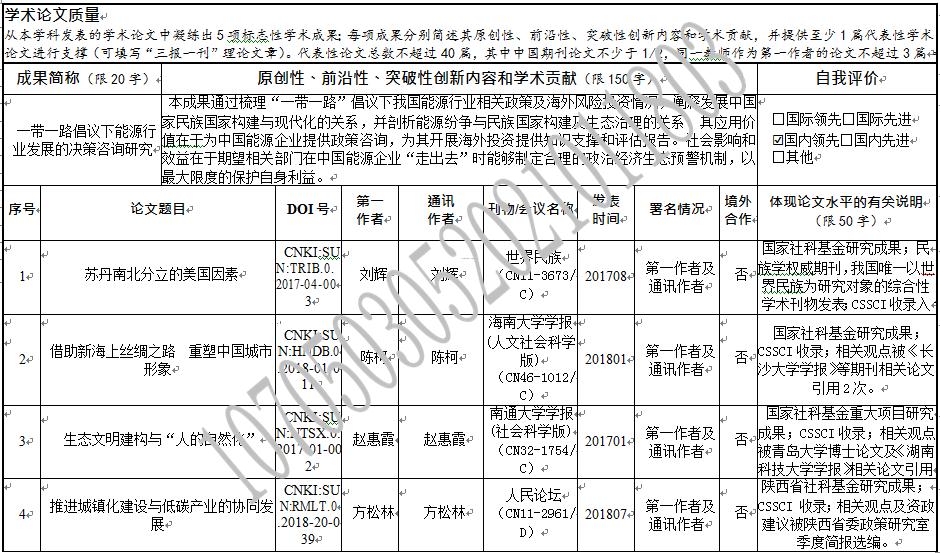 科研平台及代表学术论文质量