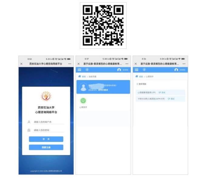 2.考生可扫描下方二维码,进入“304永利集团官网心理咨询网络平台 ”,输入账号及密码(均为考生准考证号),点击“心理测评”,完成心理健康测试(两部分)。