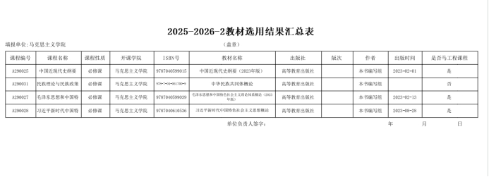 2025-2026学年第二学期教材征订工作已完成,现将教材征订结果公示如下: