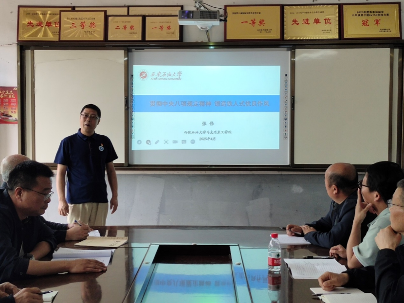 党课上,张伟书记围绕中央八项规定精神展开深入解读。他详细阐释了中央八项规定及细则的主要内容与要求,通过列举典型案例,清晰地剖析违反中央八项规定精神的具体表现,从思想根源到行为后果进行全面解读。在谈到贯彻落实中央八项规定及细则的实践举措、成效及展望时,张伟书记结合时代发展与教育行业特点,强调要将中央八项规定精神融入日常,将纪律要求转化为行动自觉。为了让抽象的理论变得生动鲜活,张伟结合铁人精神,以“补丁里的精神密码、舌尖上的纪律底线、车轮上的廉洁度、家风里的精神传承”四个维度为切入点,全方位、立体化地分享铁人王进喜“公家的东西一分也不能沾”廉洁自律的感人故事。这些故事不仅展现了“铁人”王进喜的高尚品格,更为每一位教育工作者树立了学习榜样。