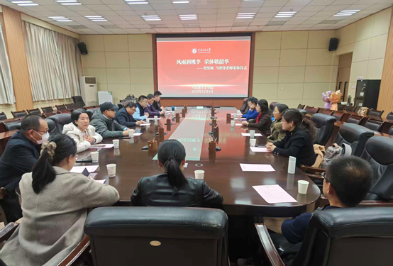 仪式最后,学院领导为退休教师献上鲜花,全体人员合影留念,定格这一温馨而意义非凡的时刻。