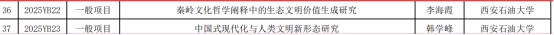 近日,陕西省哲学社会科学研究中心公布了2025年度陕省"哲学社会科学研究项目"的立项结果。我院李海霞副教授申报的"秦岭文化哲学阐释中的生态文明价值生成研究"、韩学峰老师申报的"中国式现代化与人类文明新形态研究"获批一般项目。