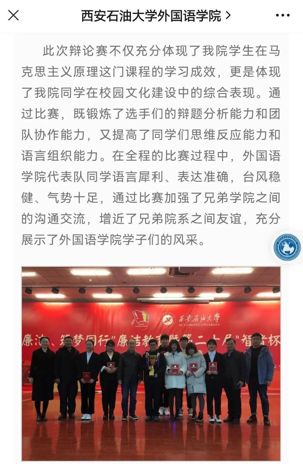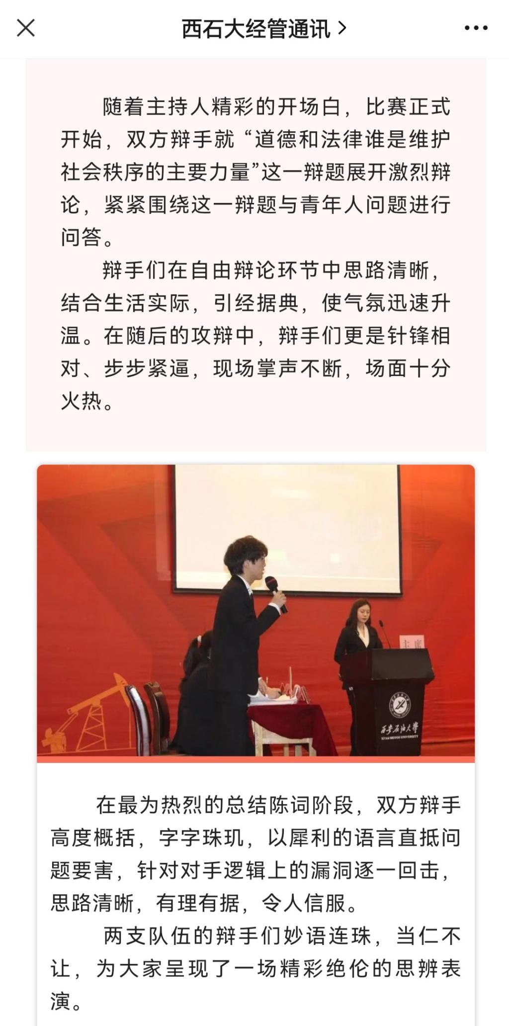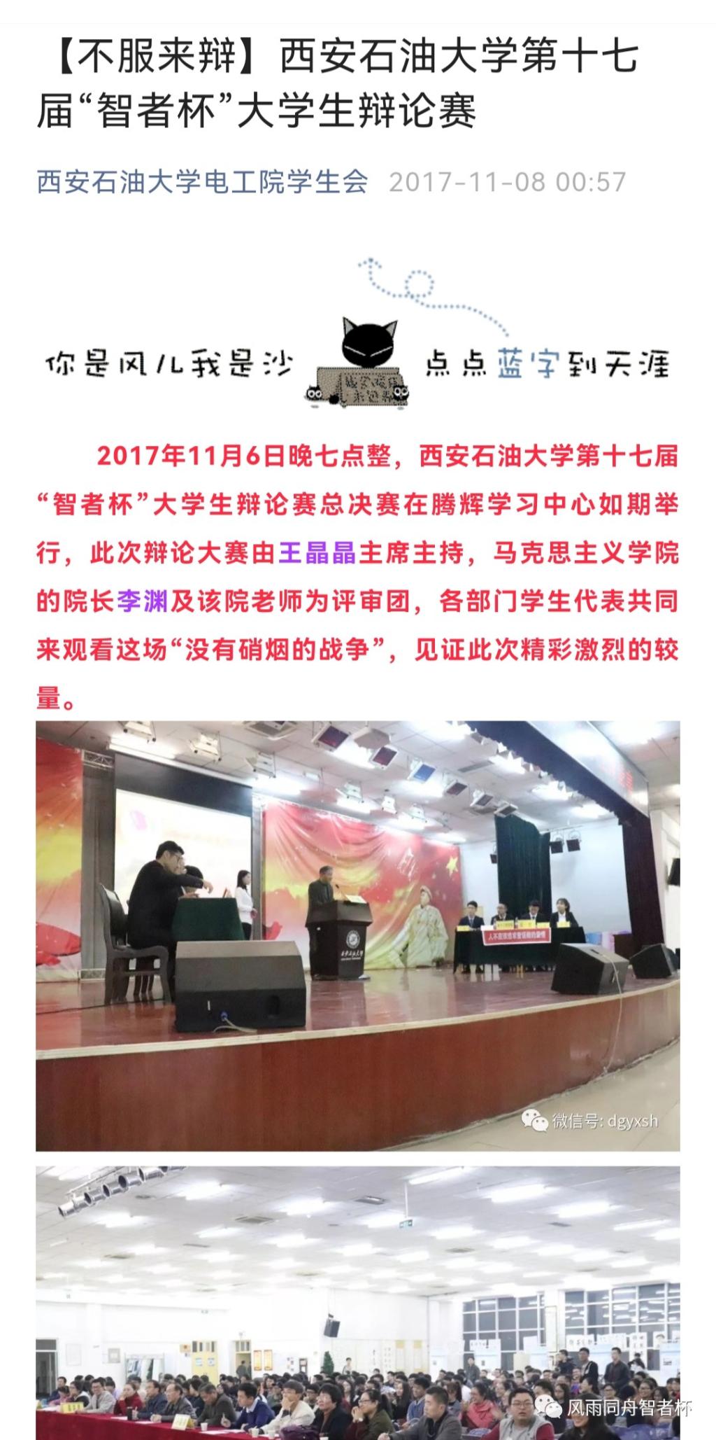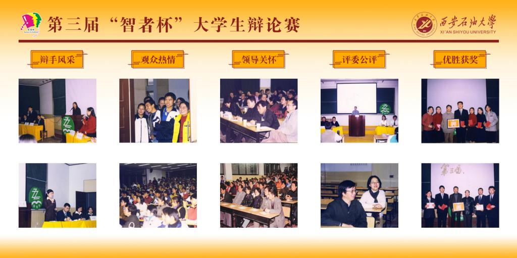 304永利集团官网“智者杯”大学生辩论始于2000年,由304永利集团官网、党委宣传部主办,学工部与校团委协办,已成功举办二十二年,发扬了“铁人精神”的校园文化。什么样的校园“文化”风韵培育什么样的学生,二十年来,“智者杯”大学生辩论赛着力提升大学生的综合素质,坚定了“石油”特色的文化历史和校园文化自信,突出了校园文化清新的时代感,为培养爱国主义信念和优秀公民道德素质的时代新人提供了坚实的文化支撑和丰厚的精神哺育。“智者杯”大学生辩论赛与时俱进,依然影响着新生代,它是深受学生喜欢的品牌活动,曾荣获陕西省教育教学成果一等奖。让我们一起回顾西石大“智者杯”大学生辩论赛历经二十载的变化,请看视频。